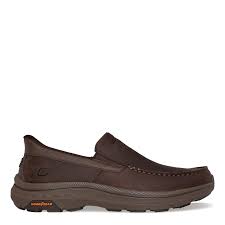Enjoy laid-back style and comfort with the Skechers Slip-ins Relaxed Fit: Pollard - Osgood Slip-ons, perfect for everyday wear. Featuring a leather upper and twin gore panels for easy entry, these moc-toe loafers come with a charcoal-infused Air-Cooled Memory Foam insole, Memory Arch support, and a durable, anti-slip Goodyear rubber outsole for enhanced traction and stability.