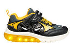 The Geox J56LBC Batman in Black Yellow is the ultimate boys’ sneaker, inspired by the legendary superhero and designed under the Geox and Warner Bros partnership. With a fun light-up sole, reinforced toe, and easy Velcro fastening, the Geox J56LBC Batman combines playful style with practicality.