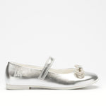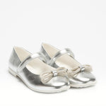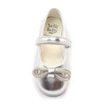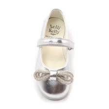 Lelli Kelly girls shoes with a crisp white finsih and a diamonte bow detail at the toe. A velcro strap closure allows for easy/off while keeping the foot secure.These are a perfect style for girls communion shoes.