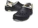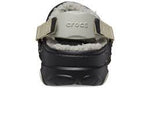 The Crocs 207936 All-Terrain Lined Clog in Black is perfect for travel and exploration. Its rugged lug outsole, enhanced tread, and lightweight Croslite™ construction provide increased traction, support, and flexibility. The fully moulded Croslite™ foam uppers and ventilation ports make it breathable, water-resistant, and easy to clean. The adjustable turbo heel straps and contrasting panel at the back provide a snug and customizable fit.