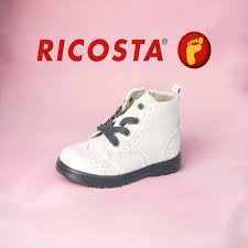 Ricosta Jemmy 50 2500502/343. Pretty Beige/cream patent leather upper with brogue detailing, a lace fastenings and a side zip offers a personalised fit and easy access. The uppers are crafted from leather as is the lining.